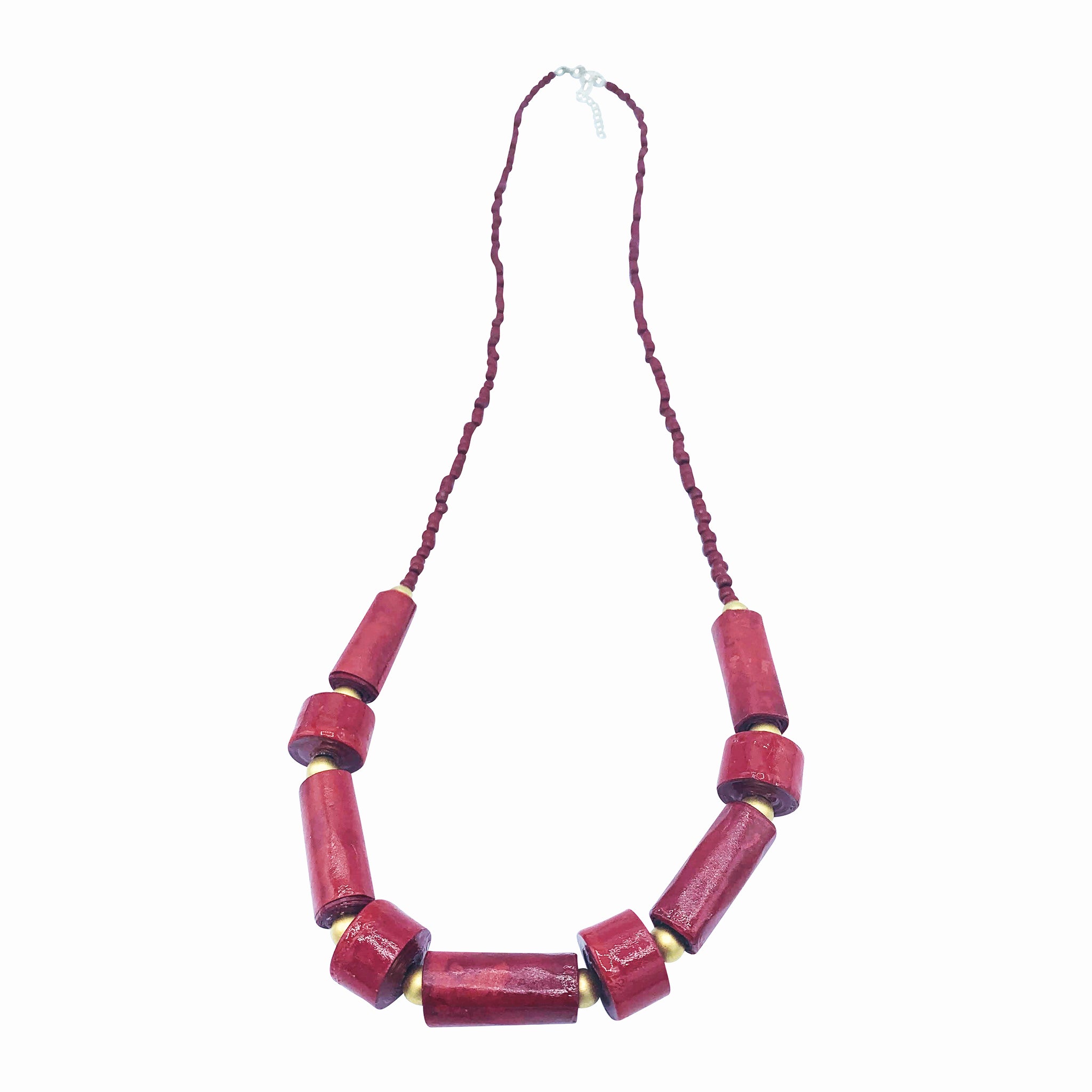 Bold and gorgeous necklace in dark red large paper beads, glass beads, clasp and extender. I designed this necklace by combining different materials and textures. Simply great jewelry to update any outfit and make a statement!