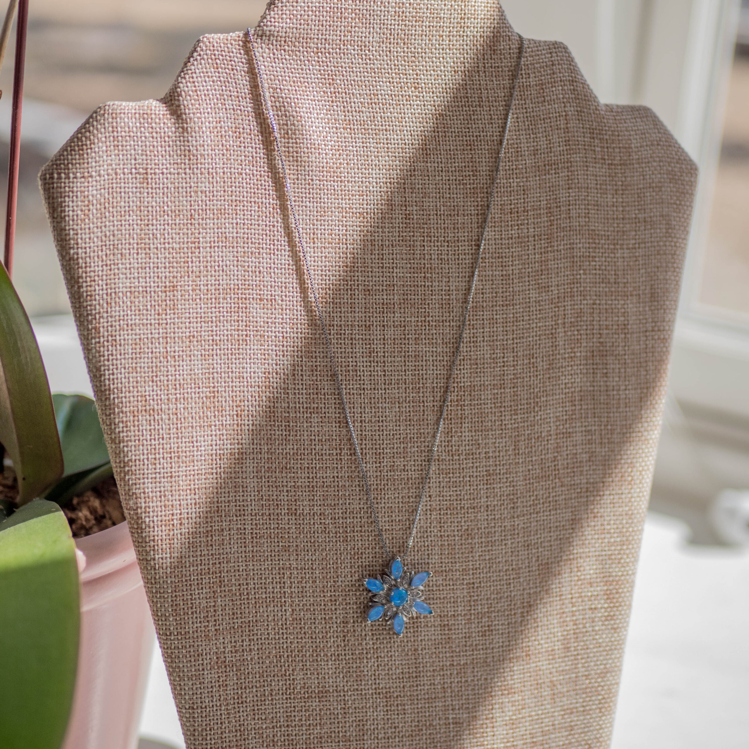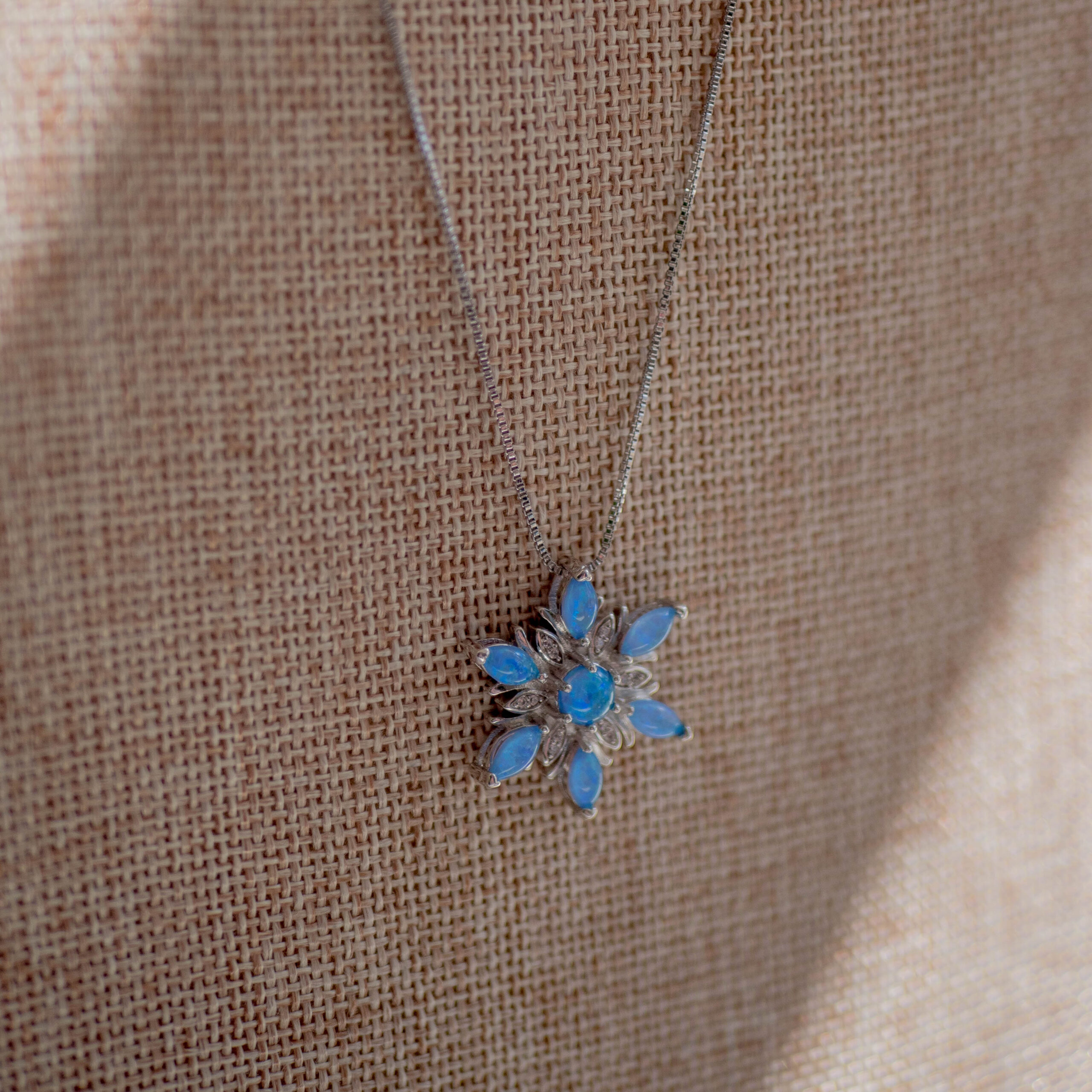 Sterling Silver with blue created opal snowflake pendant and swarowski crystals on a silver chain
