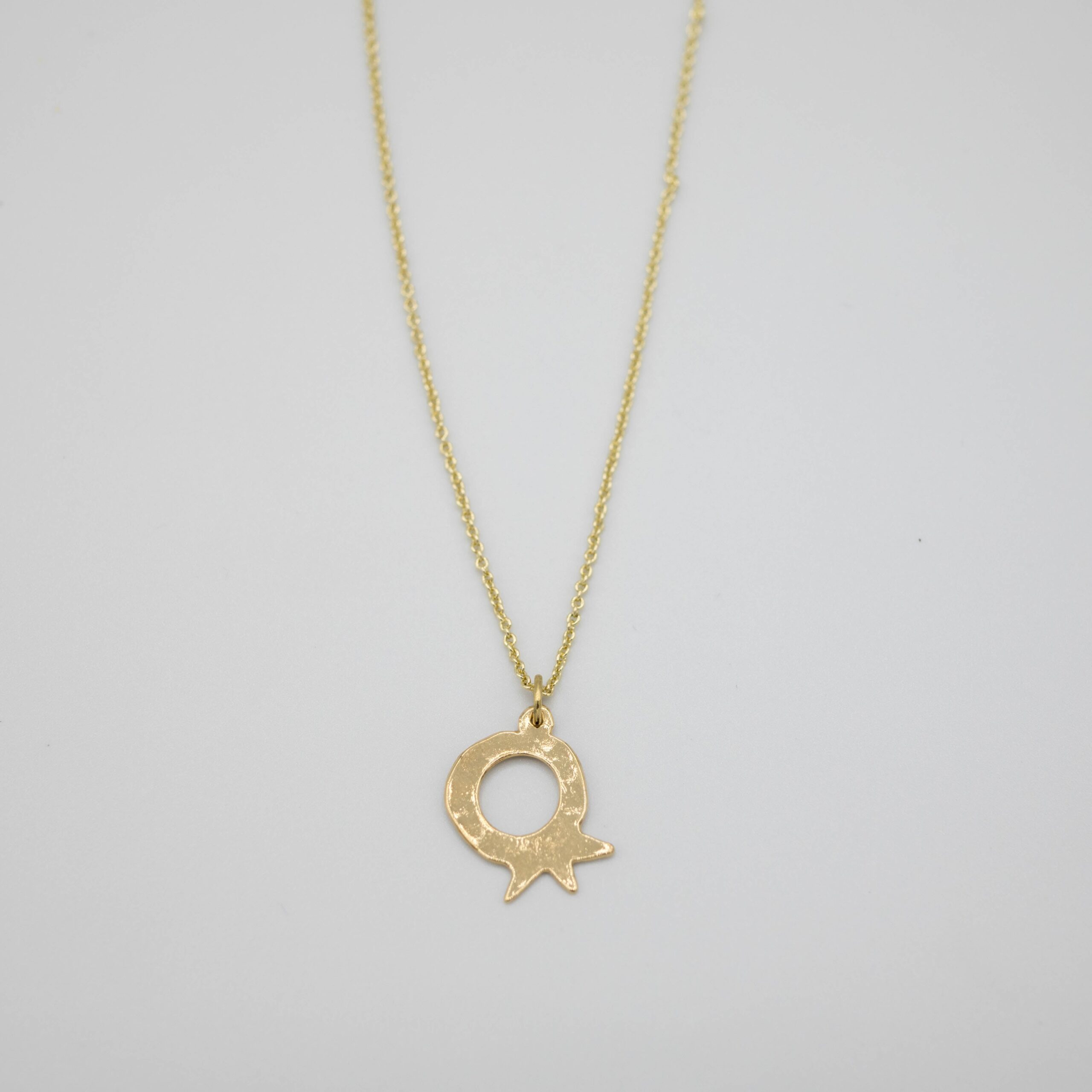 Gold filled one side of the pomegranate pendant hammered (like in the picture) and the other is smooth on a gold filled chain
