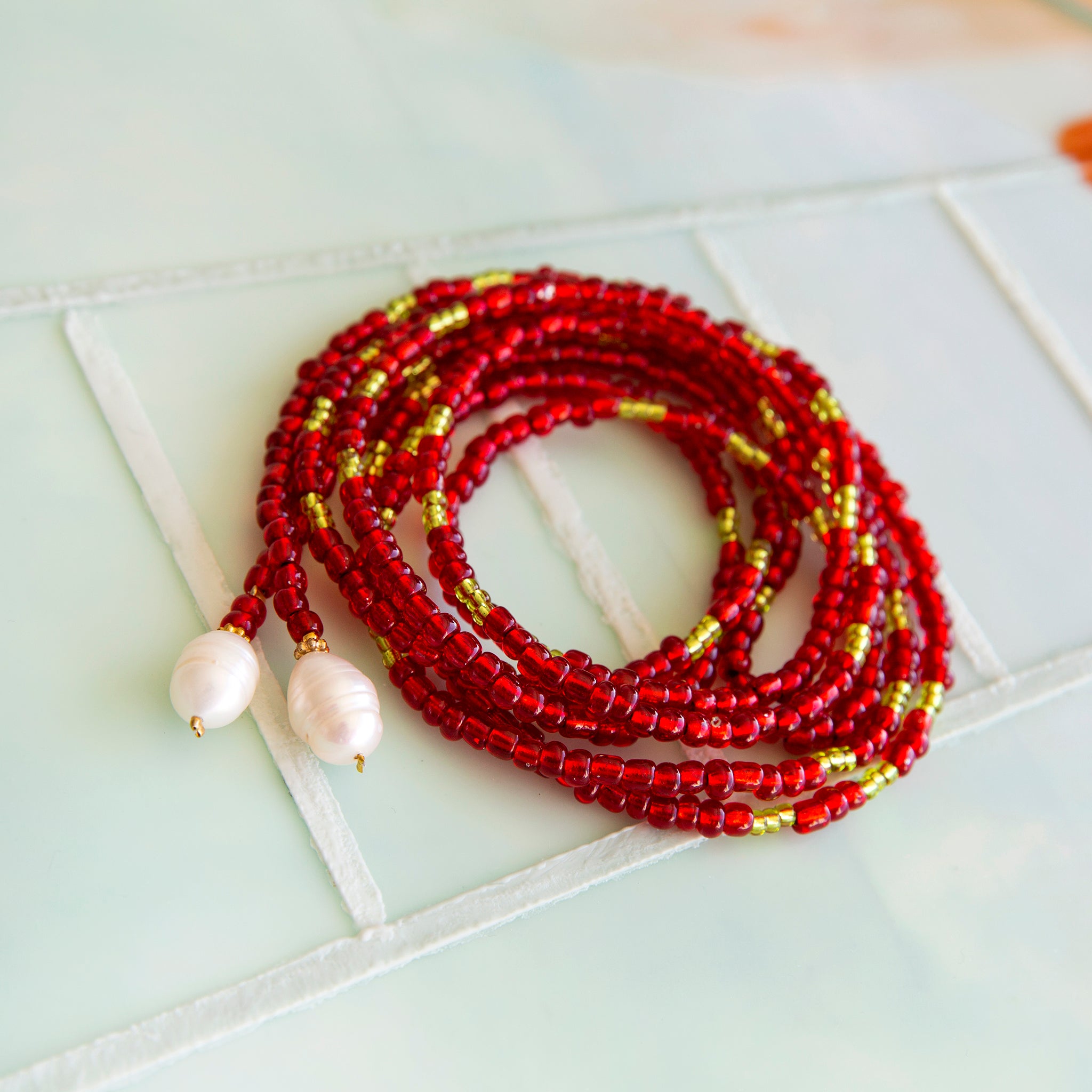 Wear it single, in layers, red and beige with 2 large potato fresh water pearls